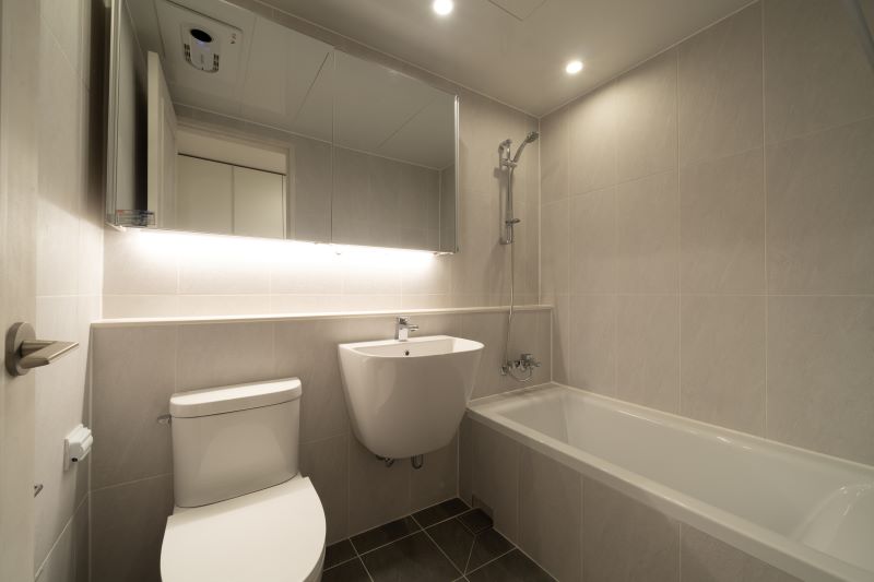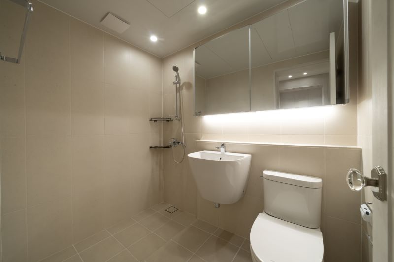 욕실은 전체적인 디자인과 맞게 베이지 톤의