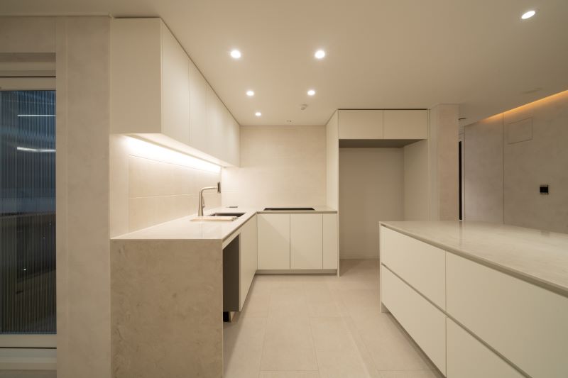 주방 역시 톤온톤인 만큼 베이지 톤의 마감과