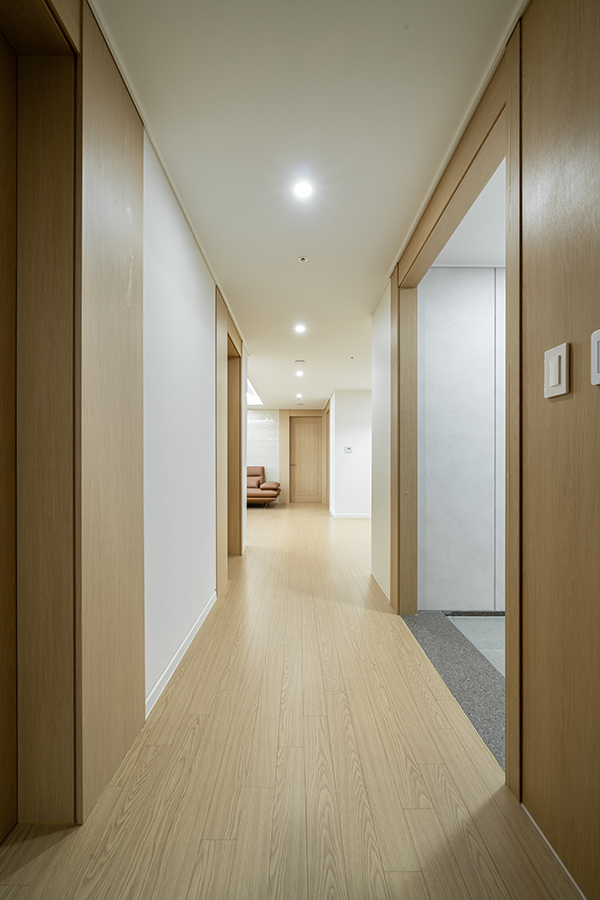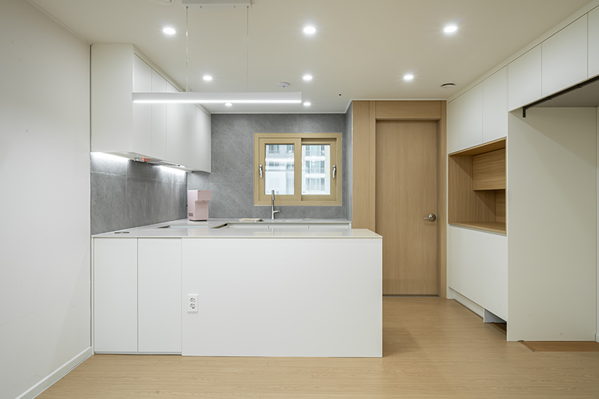 전체적인 컨셉은 화이트 톤의마감과 마루,문,문선