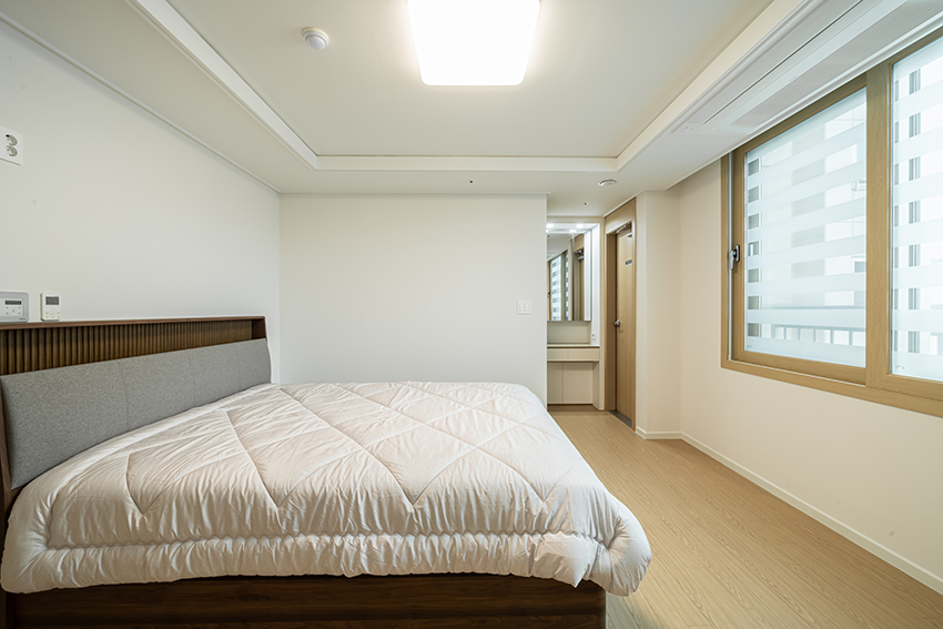 방은 화이트톤에 우드로
