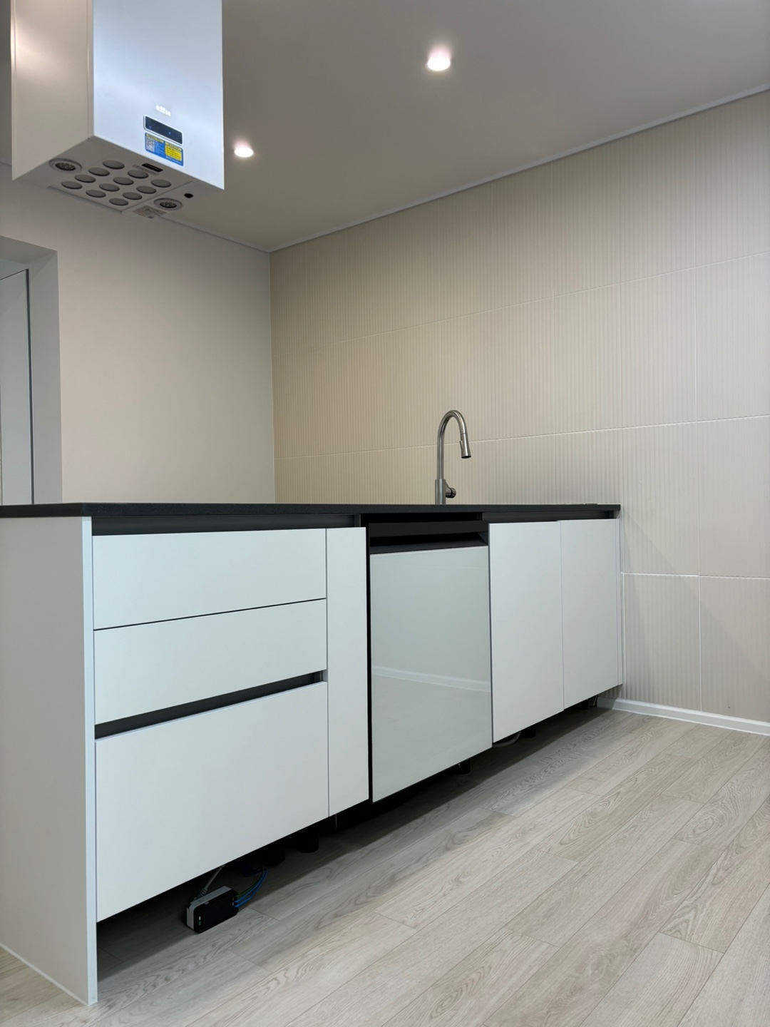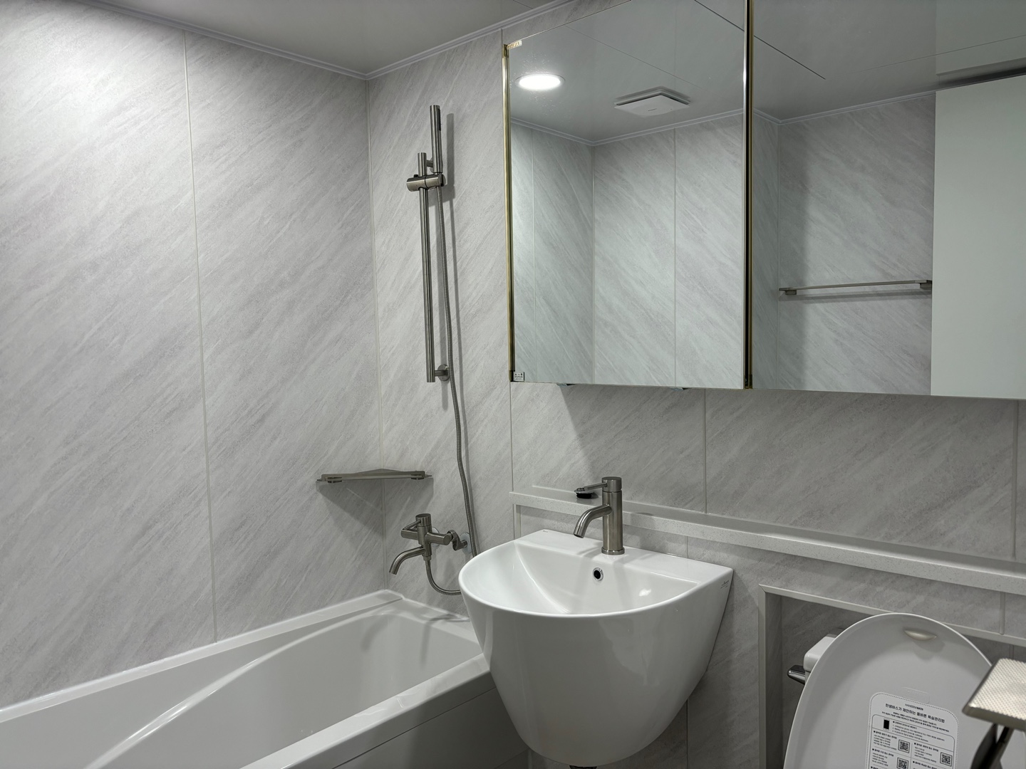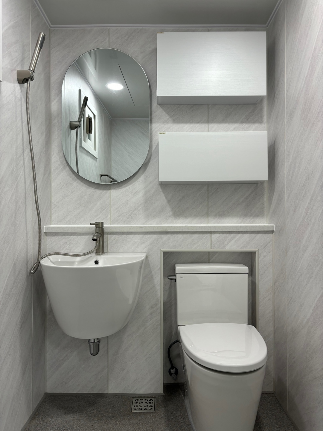 벽지는 밝은 그레이 벽재식으로 마감해 드렸습니다.