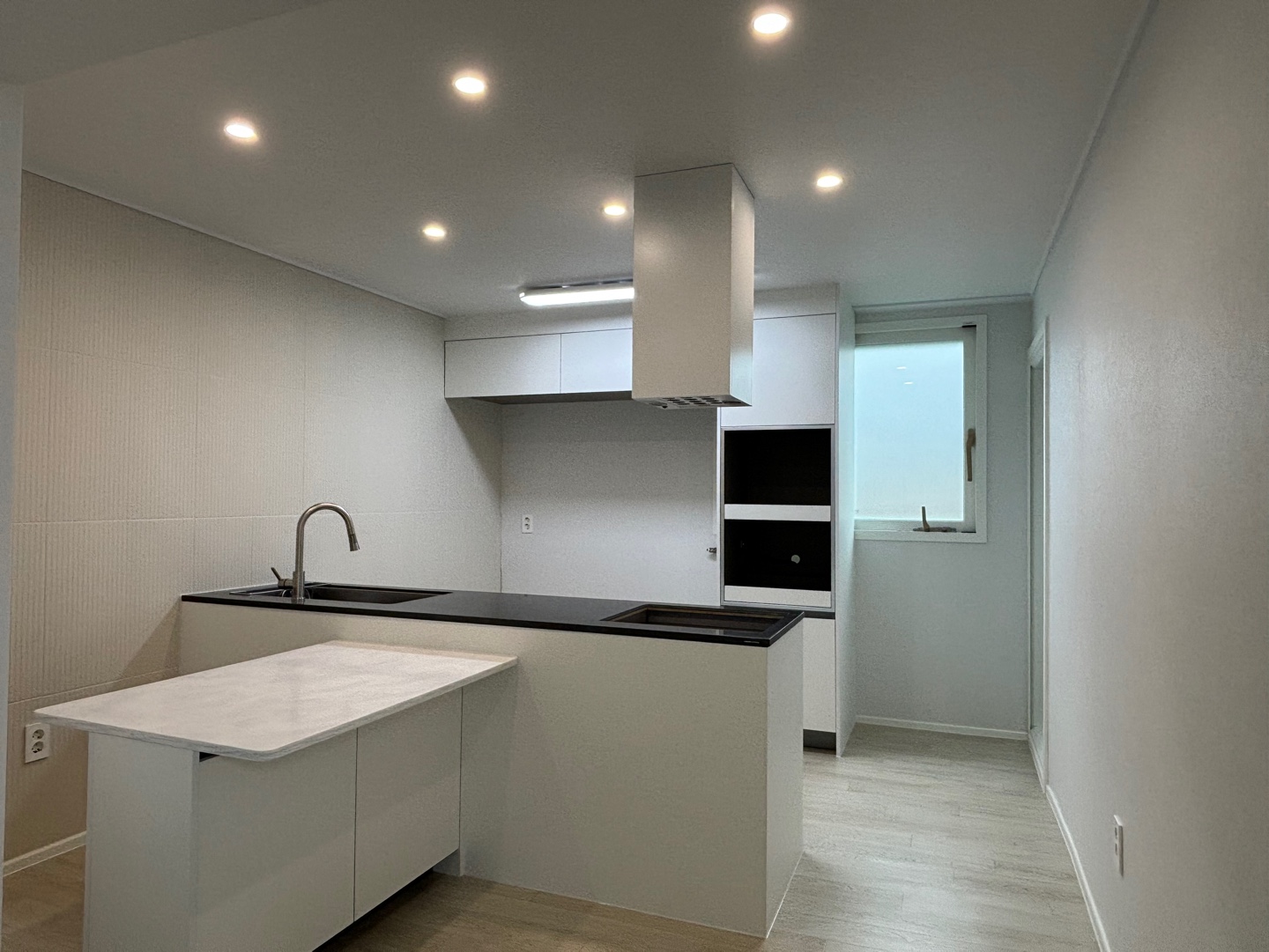 주방은 블랙 앤 화이트 톤의 아일랜드 식탁을 넣었고