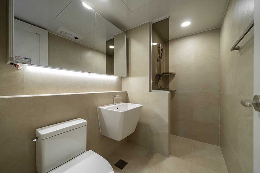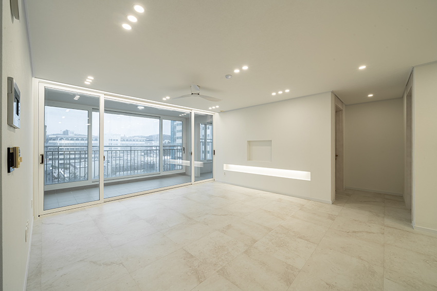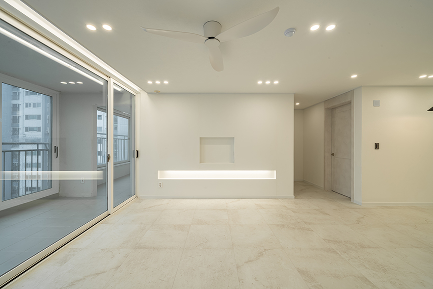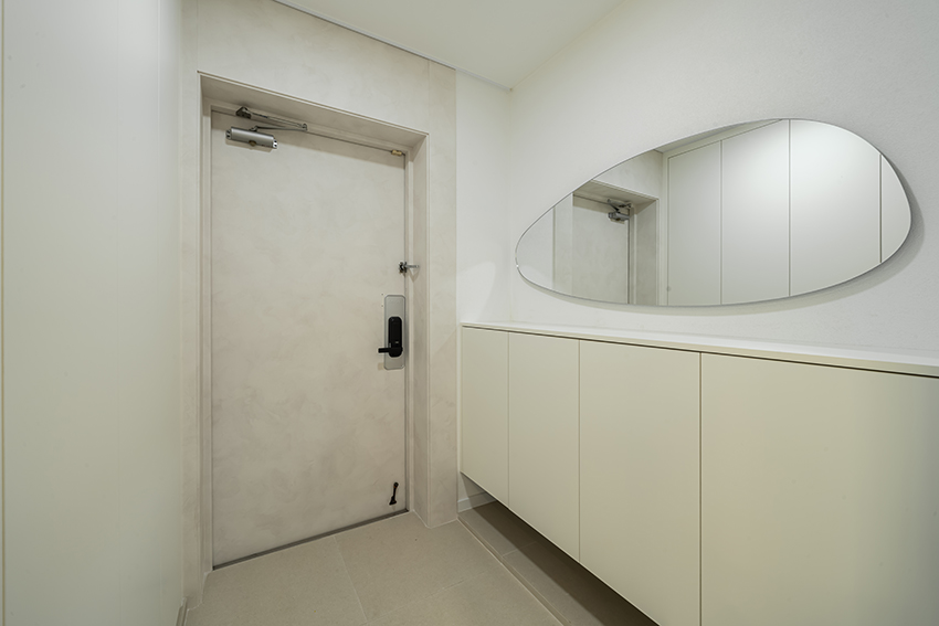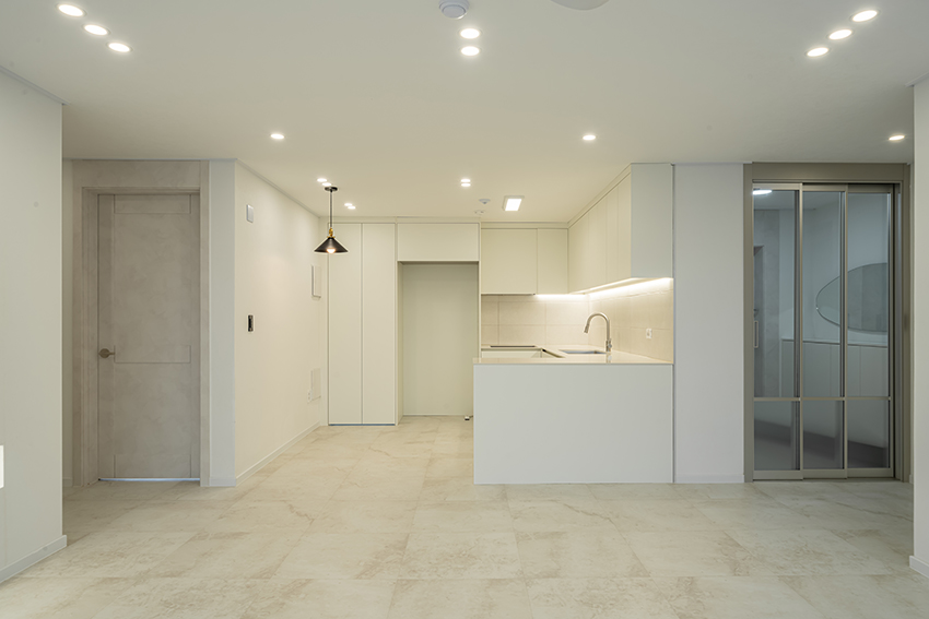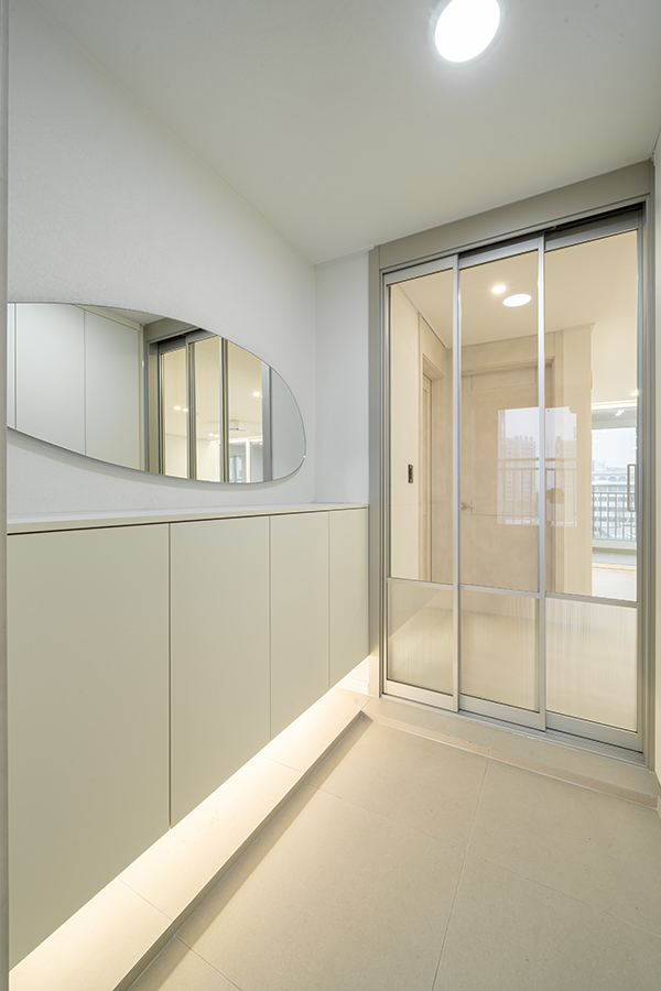 또한 아이보리에서 그레이로 이어지는 자연스러운 톤 변화를 주며 공간의 톤앤매너를 지켰습니다.