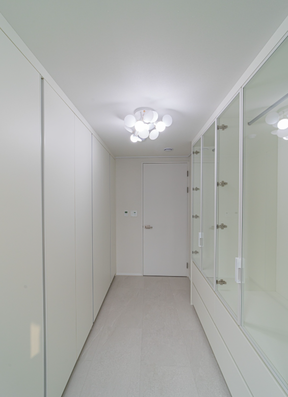 복도에 들어서면서부터 아이보리톤 공간과 은은한 조명이 집의 분위기를 변화시켜줍니다.