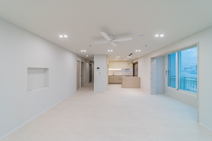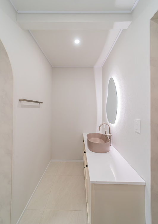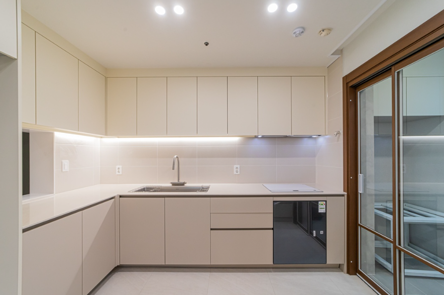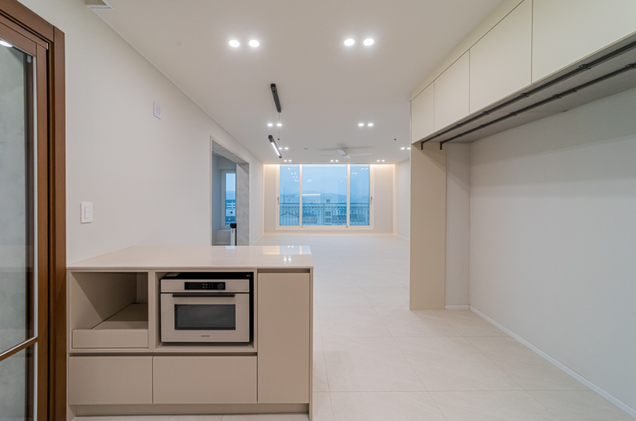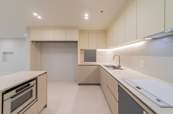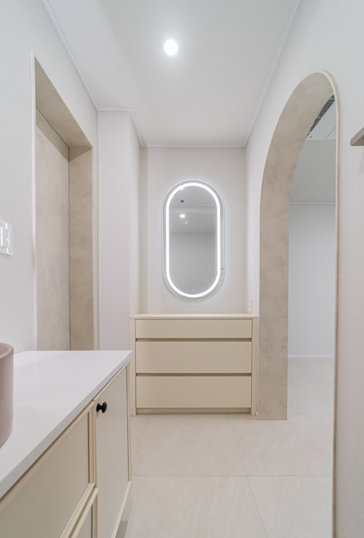 전반적으로 모던하고 감각적인 인테리어가 돋보이며, 아이보리톤을 베이스로 그레이와 베이지가 멋스럽게 어우러진 현장입니다.