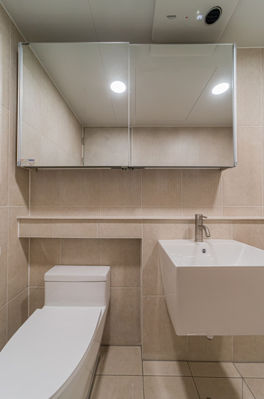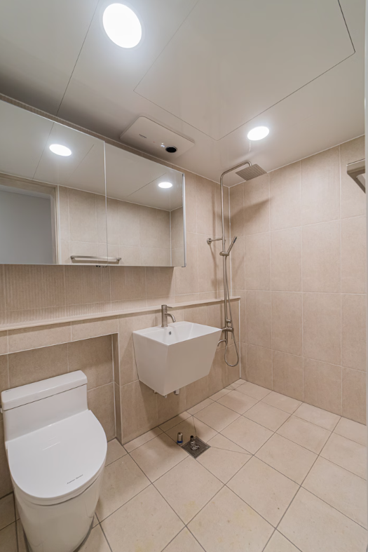 거실 화장실은 전반적으로 밝은 아이보리 톤으로