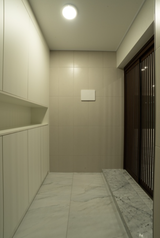 대리석과 잘 어울리는 젠스타일 중문이 포인트인 현관입니다.
