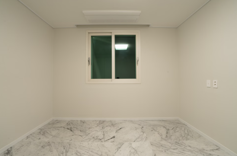 우드 소재의 젠스타일의 중문이 천연대리석과 어우러지며, 포근하고 아늑한 느낌을 줍니다.