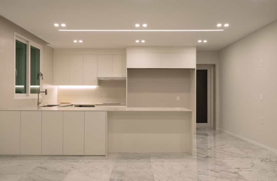 주방은 상부장을 없애고, 대형 아일랜드 시공으로 개방감을 주었습니다.