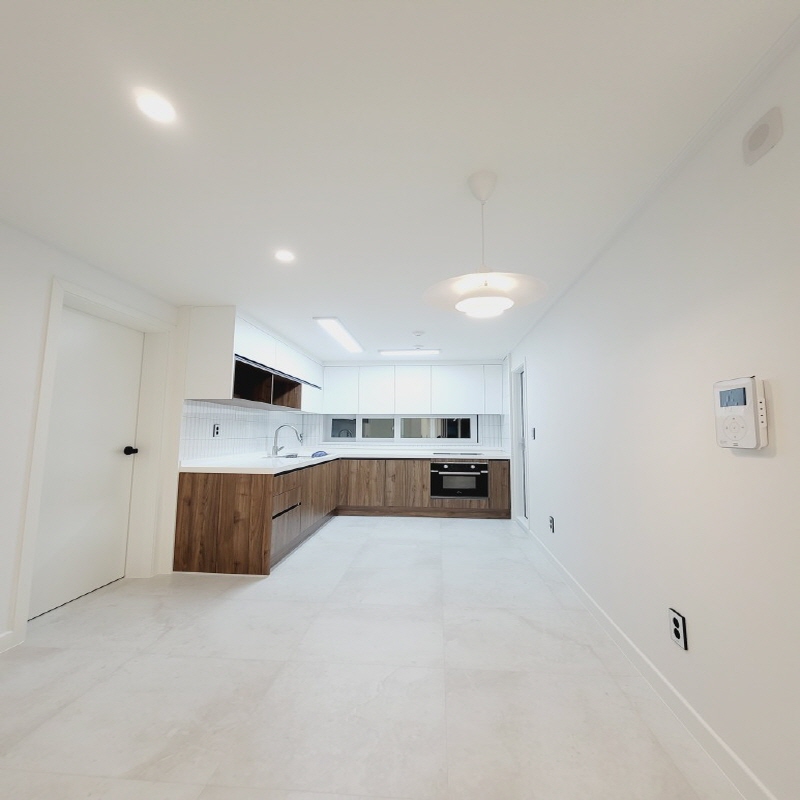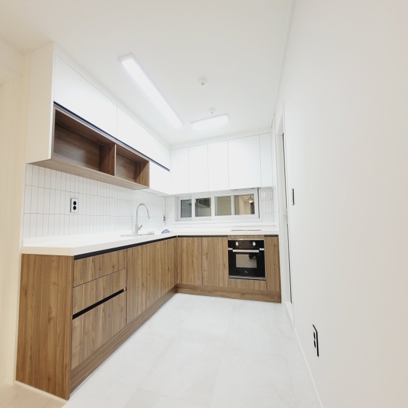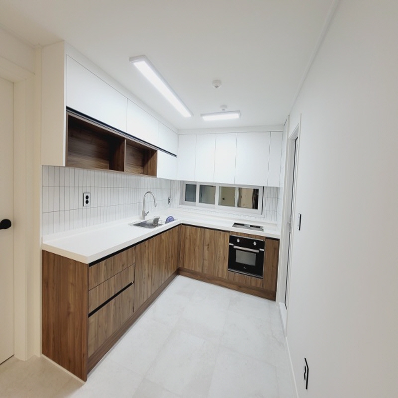 주방은 실패 없는 우드와 화이트 조합으로 따뜻한 느낌과