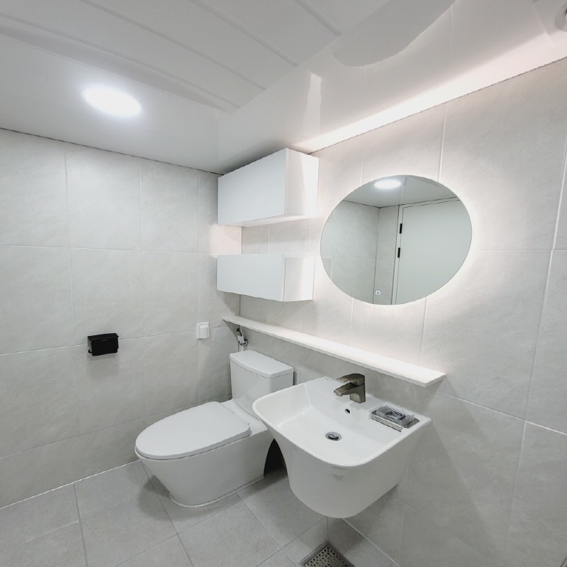 시원한 대리석 질감의 바닥 타일로 마감하여 세련되고